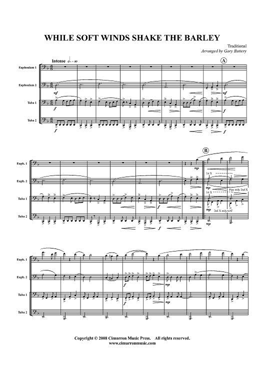 Digital Sheet Music for While Soft Winds Shake the Barley - Score by Gary Buttery, Traditional scored for Tuba Quartet; id:416088