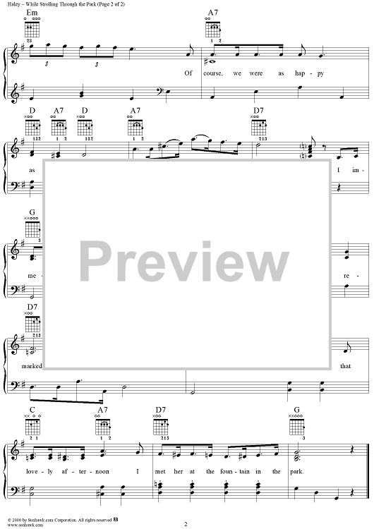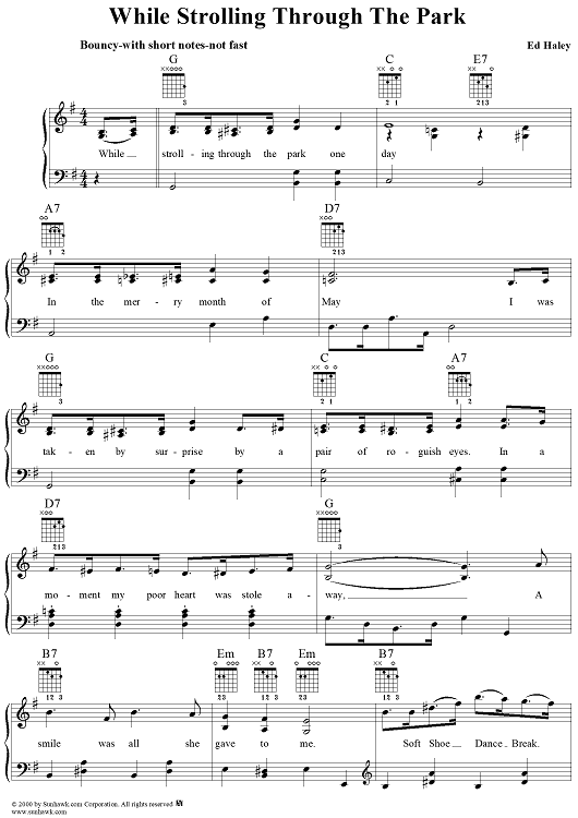 Digital Sheet Music for While Strolling Through the Park by Ed Haley scored for Piano/Vocal/Chords; id:267191