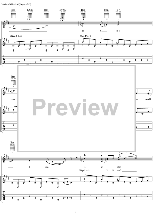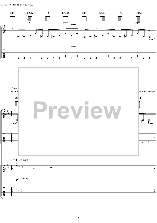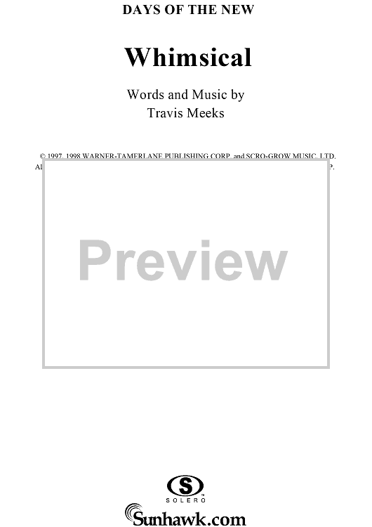 Digital Sheet Music for Whimsical by Travis Meeks, Days of the New scored for Guitar Tab/Vocal; id:112357