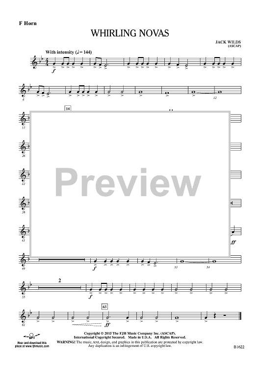 Digital Sheet Music for Whirling Novas - F Horn by Jack Wilds scored for Concert Band; id:454661