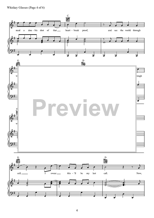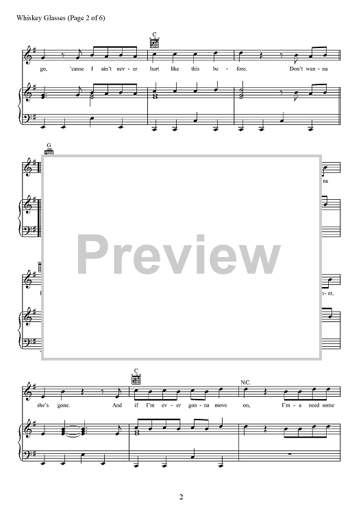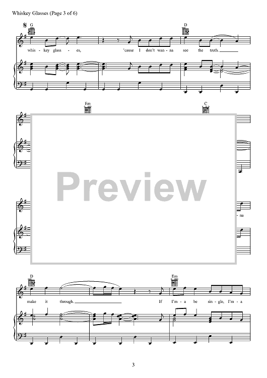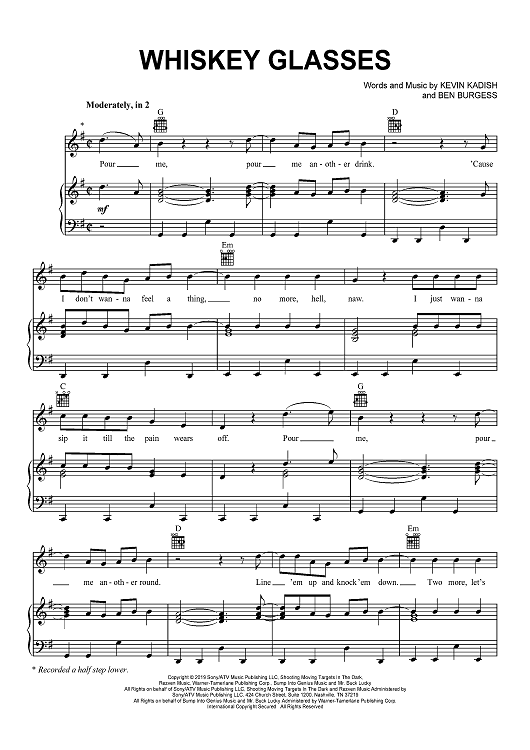 Digital Sheet Music for Whiskey Glasses by Kevin Kadish, Morgan Wallen, Ben Burgess scored for Piano/Vocal/Chords; id:467614