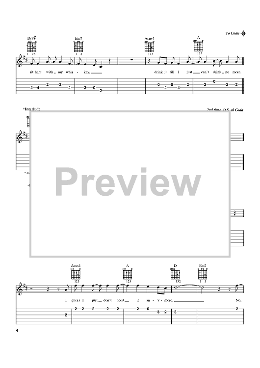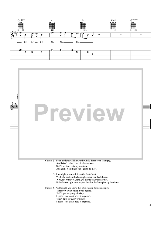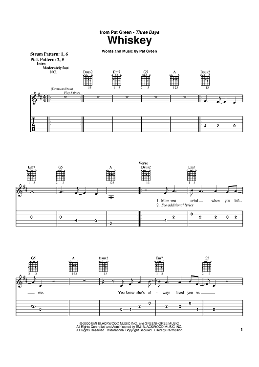 Digital Sheet Music for Whiskey by Pat Green scored for Easy Guitar Tab; id:372811