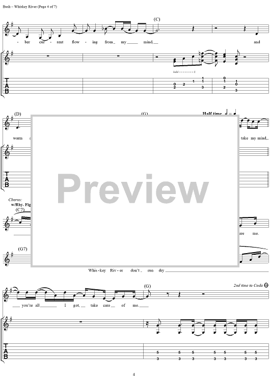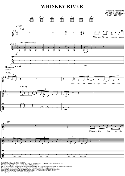 "Whiskey River" Sheet Music by Willie Nelson