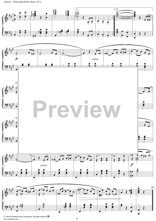 Digital Sheet Music for Whispering Hearts (Waltz) by Samuel S. Aronson scored for Piano Solo; id:276995