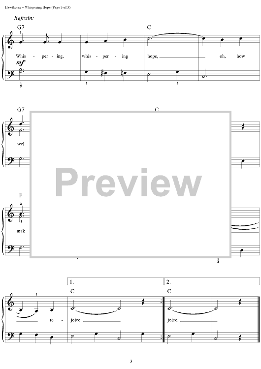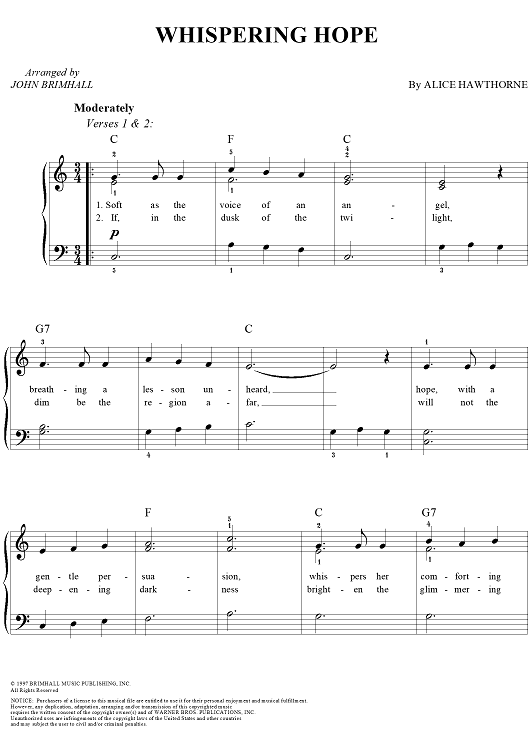 Digital Sheet Music for Whispering Hope by Alice Hawthorne, John Brimhall scored for Easy Piano/Vocal; id:267223
