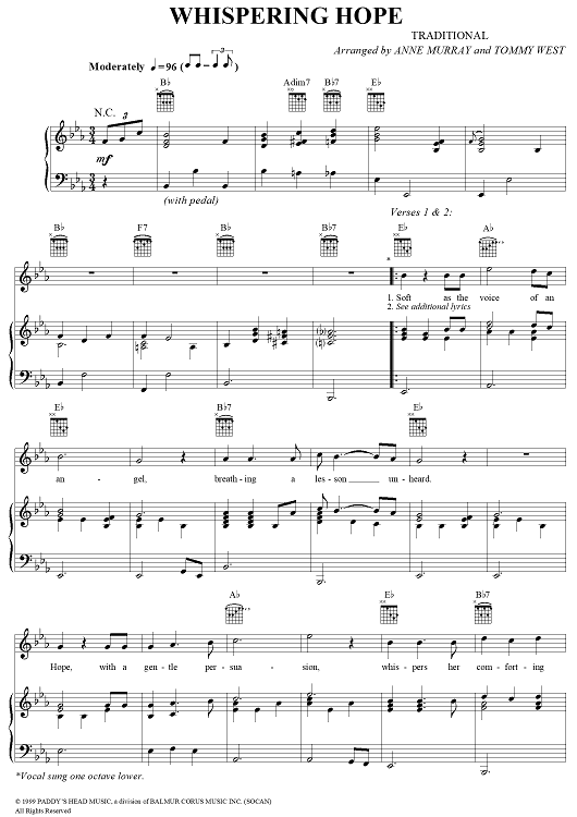 Digital Sheet Music for Whispering Hope by Anne Murray, Tommy West, Traditional scored for Piano/Vocal/Chords; id:289067