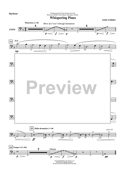"Whispering Pines - Baritone (Bass Clef)" Sheet Music by Mike Forbes