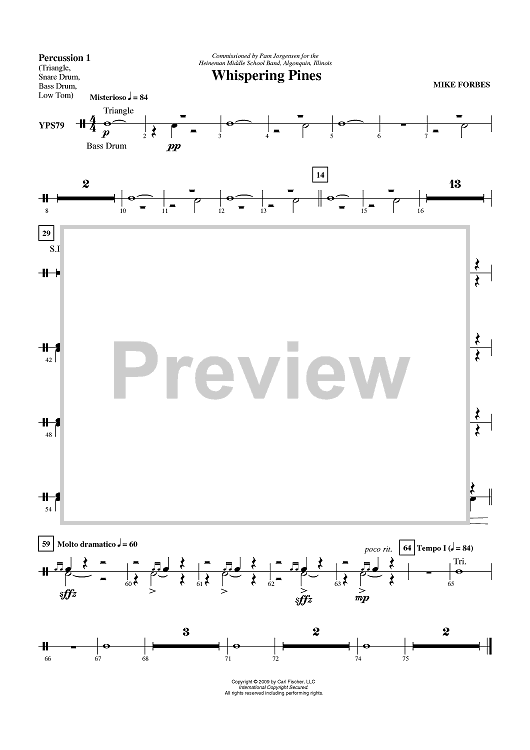 "Whispering Pines - Percussion 1" Sheet Music by Mike Forbes