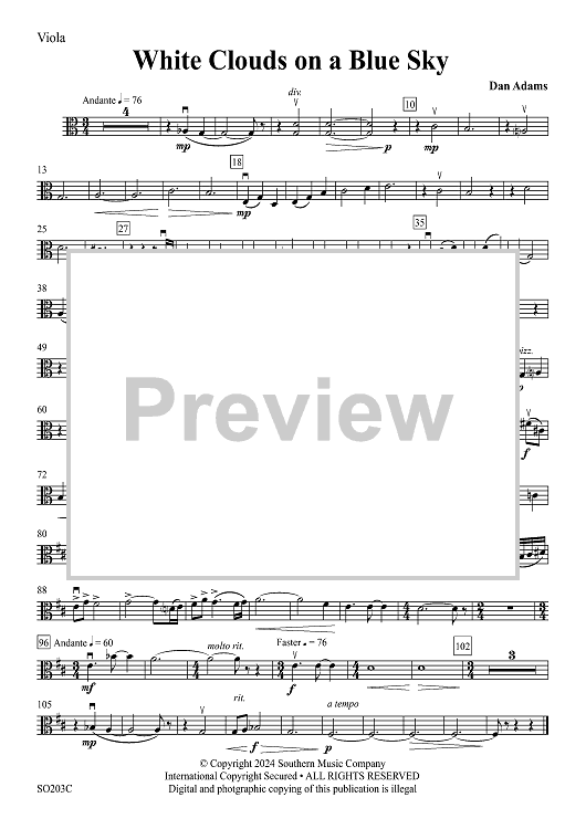 Digital Sheet Music for White Clouds on a Blue Sky - Viola by Dan Adams scored for String Orchestra; id:504211