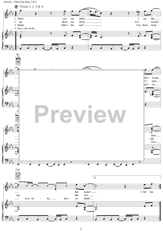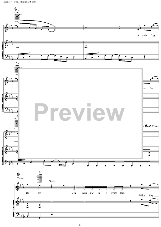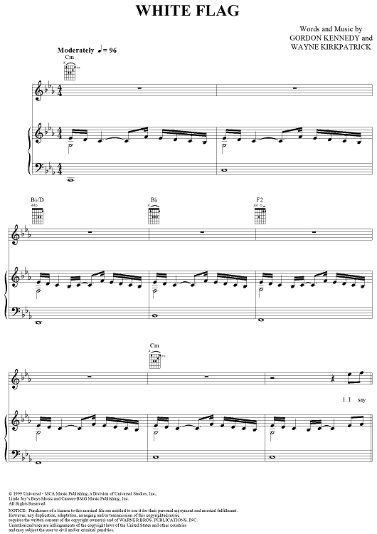 Digital Sheet Music for White Flag by Wayne Kirkpatrick, Chris Gaines, Gordon Kennedy scored for Piano/Vocal/Chords; id:236465