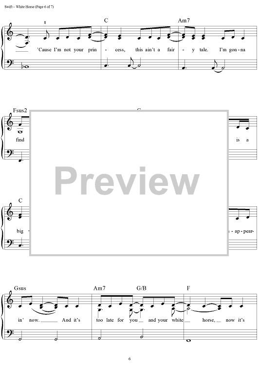 Digital Sheet Music for White Horse by Liz Rose, Taylor Swift scored for Easy Piano/Vocal/Chords; id:457671
