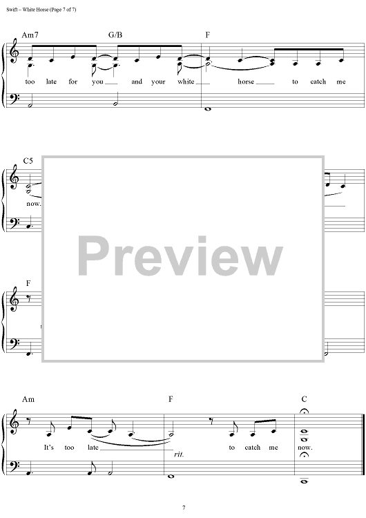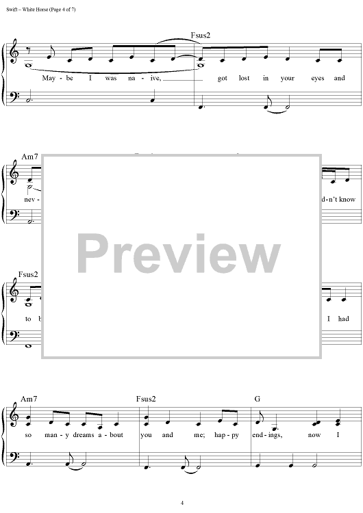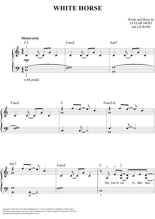 "White Horse" Sheet Music by Taylor Swift