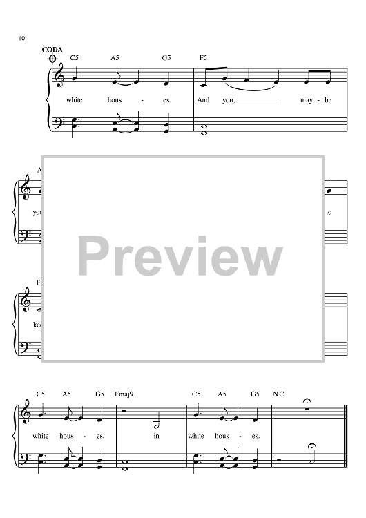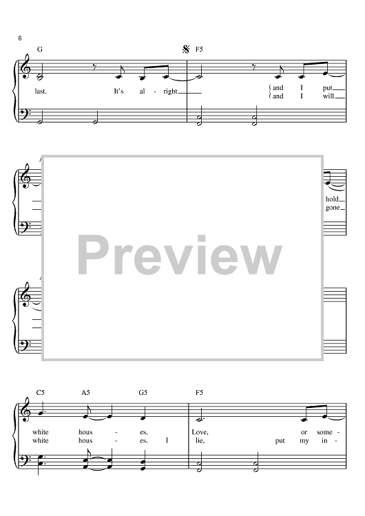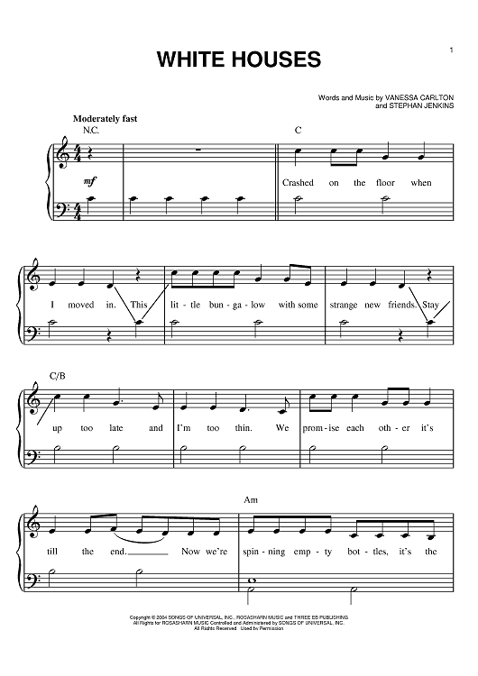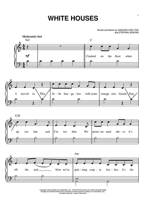Digital Sheet Music for White Houses by Vanessa Carlton, Stephan Jenkins scored for Easy Piano; id:386005
