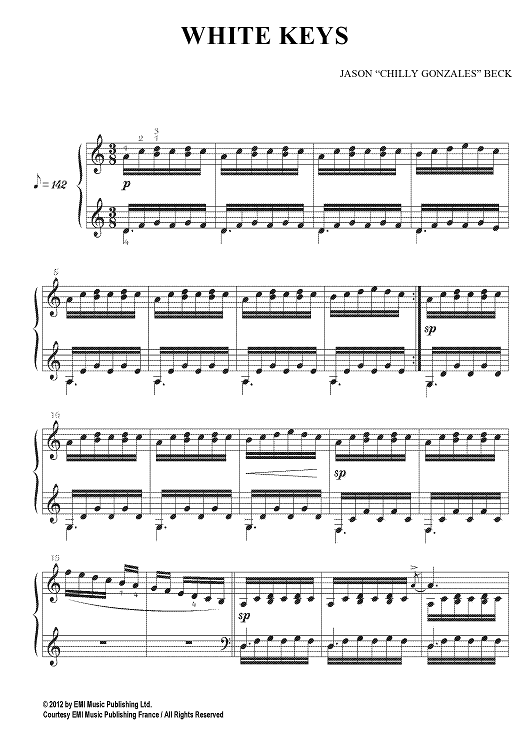Digital Sheet Music for White Keys by Chilly Gonzalez scored for Piano Solo; id:465643