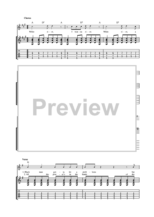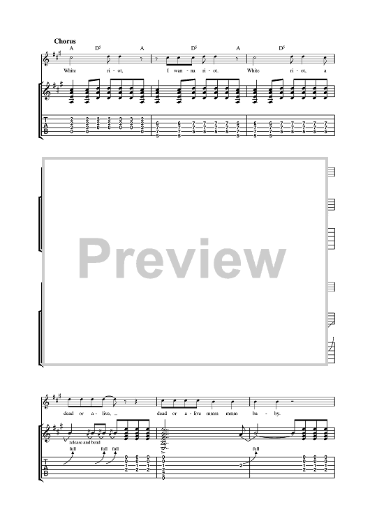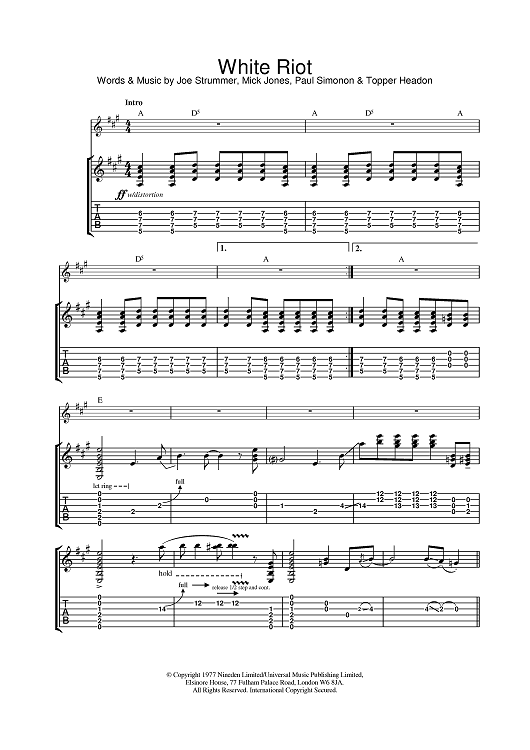 Digital Sheet Music for White Riot by The Clash scored for Guitar Tab; id:378776