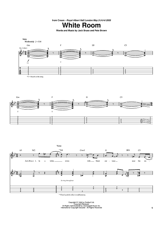 Digital Sheet Music for White Room by Cream, Pete Brown, Jack Bruce scored for Guitar Tab; id:392548