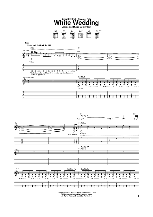 Digital Sheet Music for White Wedding by Billy Idol scored for Guitar Tab; id:381447