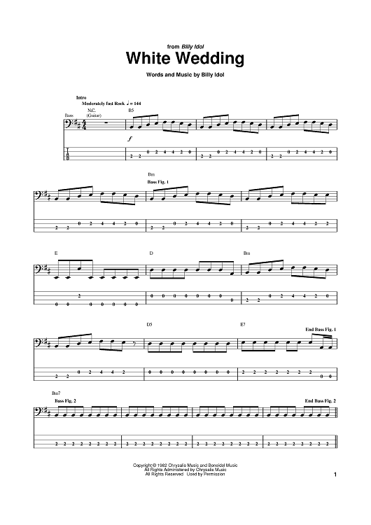 Digital Sheet Music for White Wedding by Billy Idol scored for Bass Tab; id:382324