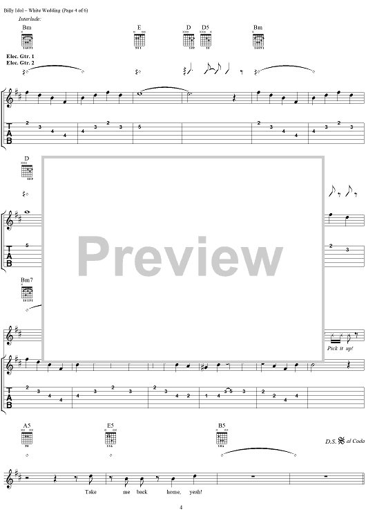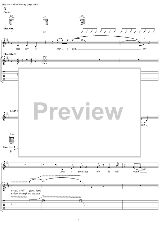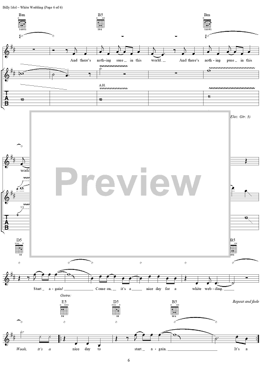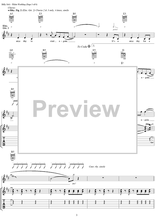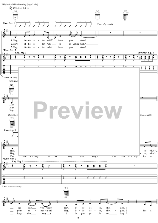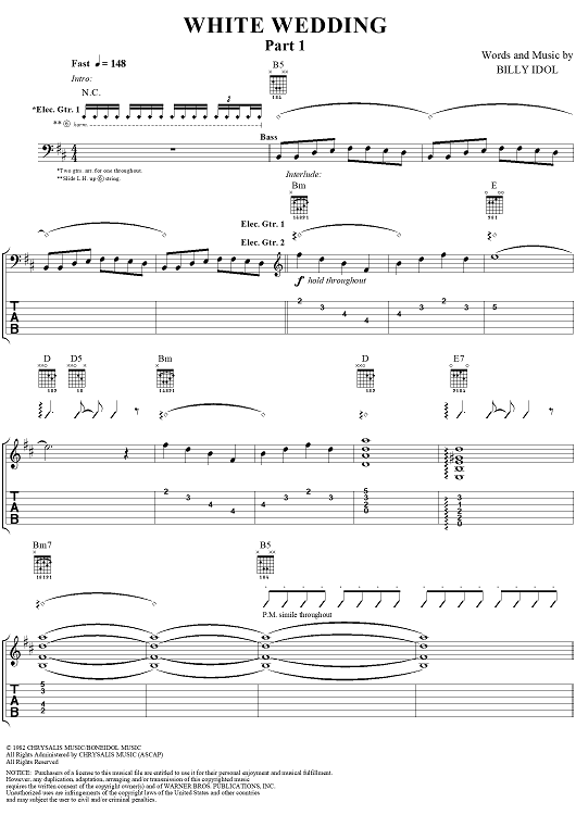 "White Wedding (Part 1)" Sheet Music by Billy Idol