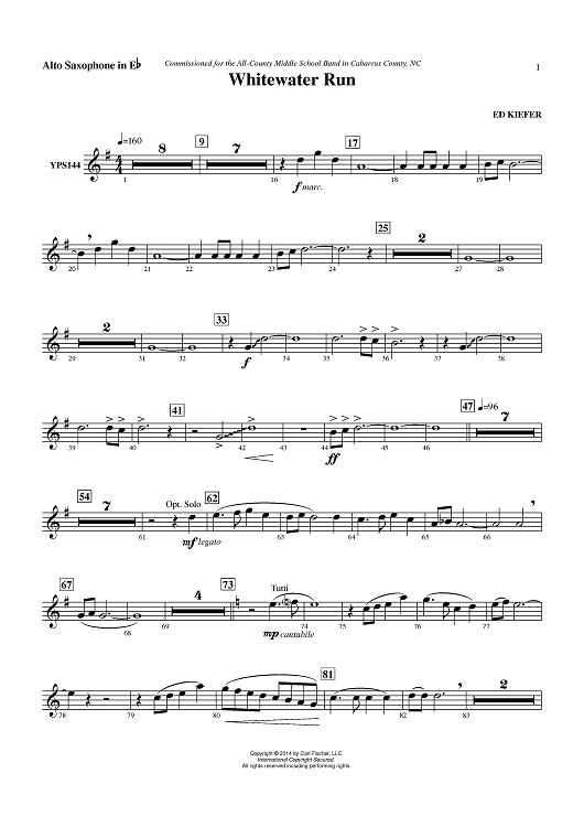 "Whitewater Run - Alto Sax" Sheet Music by Ed Kiefer