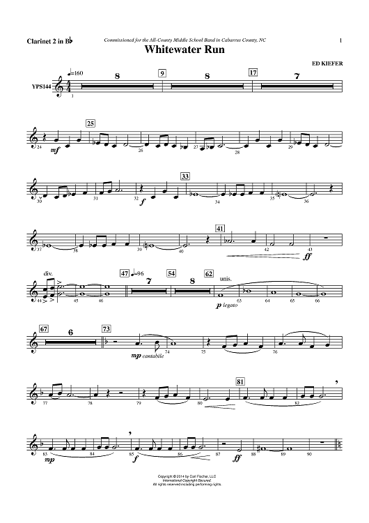 "Whitewater Run - Clarinet 2 in Bb" Sheet Music by Ed Kiefer