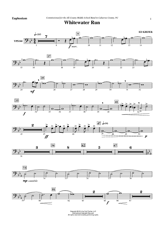 Digital Sheet Music for Whitewater Run - Euphonium BC by Ed Kiefer scored for Concert Band; id:453769