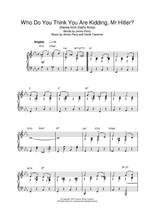 Digital Sheet Music for Who Do You Think You Are Kidding Mr. Hitler? by Jimmy Perry, Derek Taverner scored for Piano; id:385165