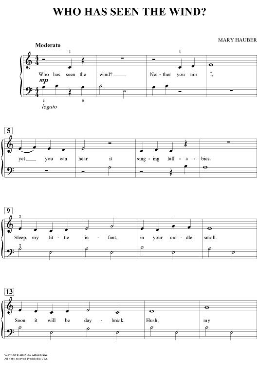 Digital Sheet Music for Who Has Seen The Wind? by Mary Hauber scored for Piano; id:464255