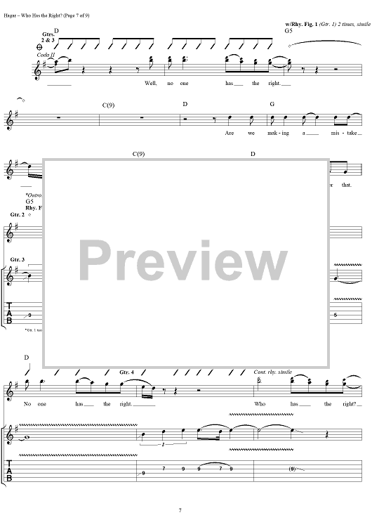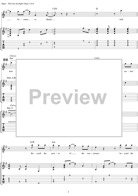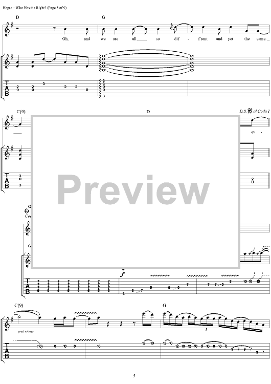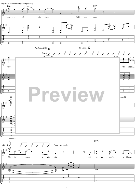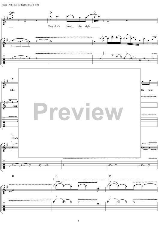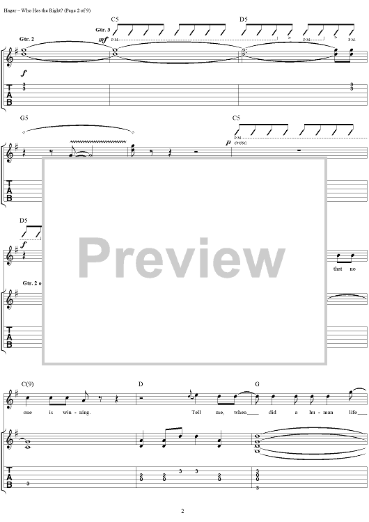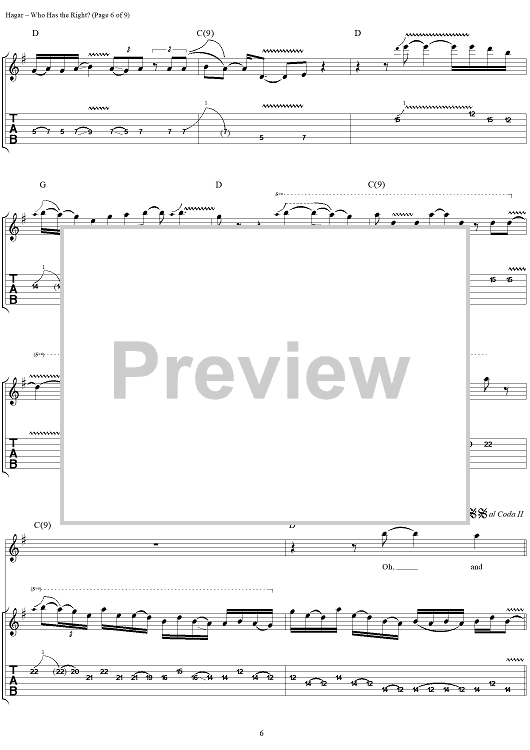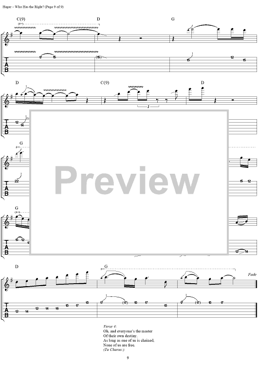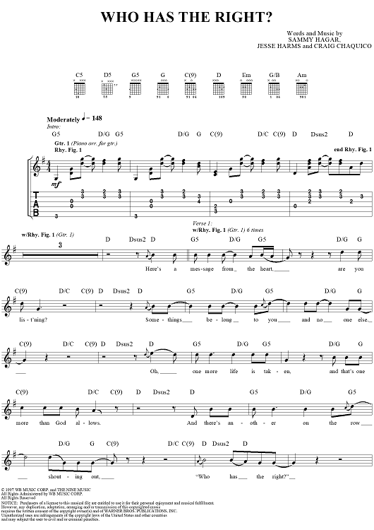 Digital Sheet Music for Who Has The Right by Jesse Harms, Sammy Hagar, Craig Chaquico scored for Guitar Tab/Vocal; id:241866