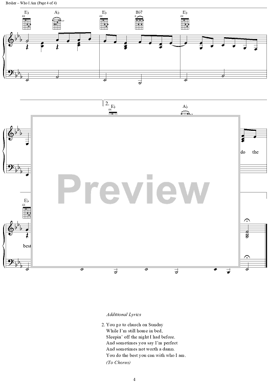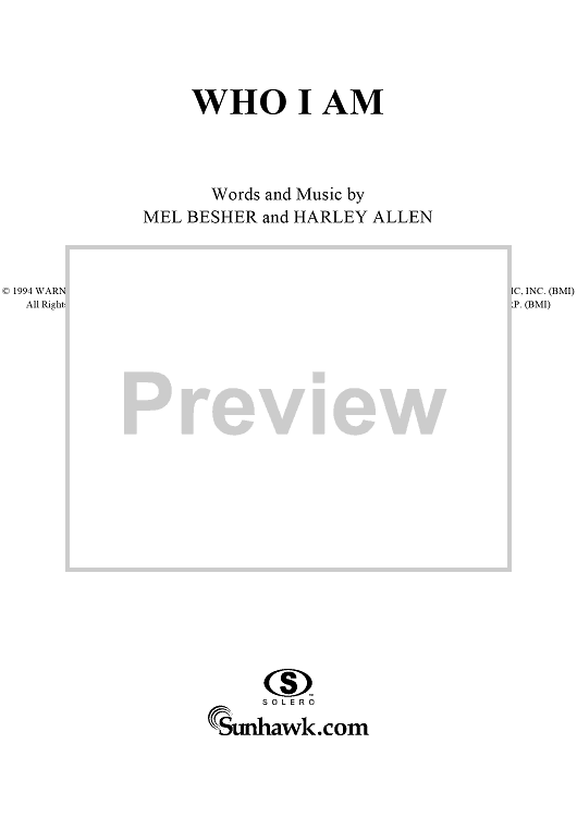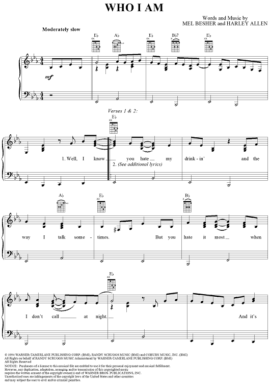 Digital Sheet Music for Who I Am by Harley Allen, Mel Besher, Al Jackson Jr scored for Piano/Vocal/Chords; id:203912