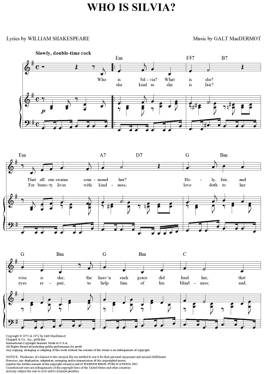 "Who Is Silvia?" Sheet Music by Galt MacDermot