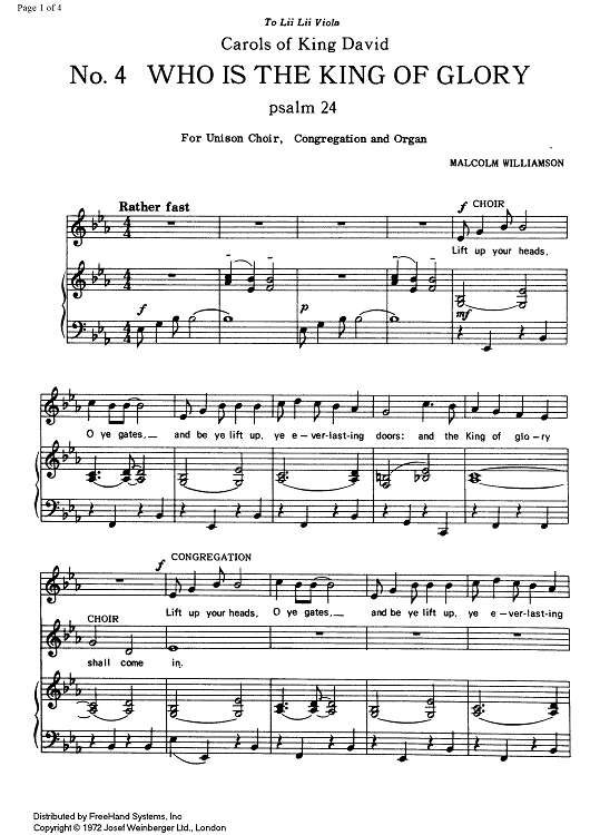 "Who Is The King Of Glory" Sheet Music by Malcolm Williamson