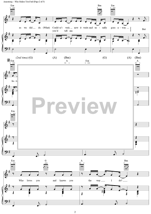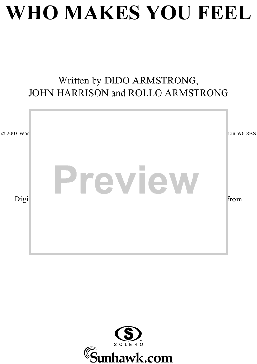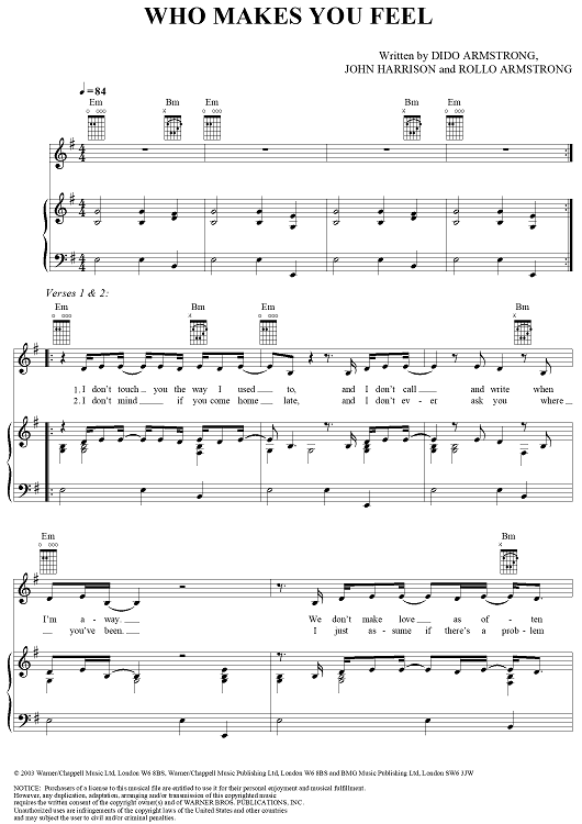 Digital Sheet Music for Who Makes You Feel by Dido Armstrong, Dido, Rollo Armstrong, John Harrison scored for Piano/Vocal/Chords; id:305309
