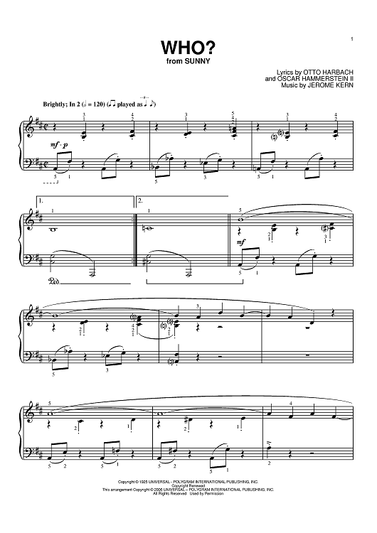 Digital Sheet Music for Who? by Jerome Kern, Oscar Hammerstein II, Otto Harbach scored for Piano; id:388916