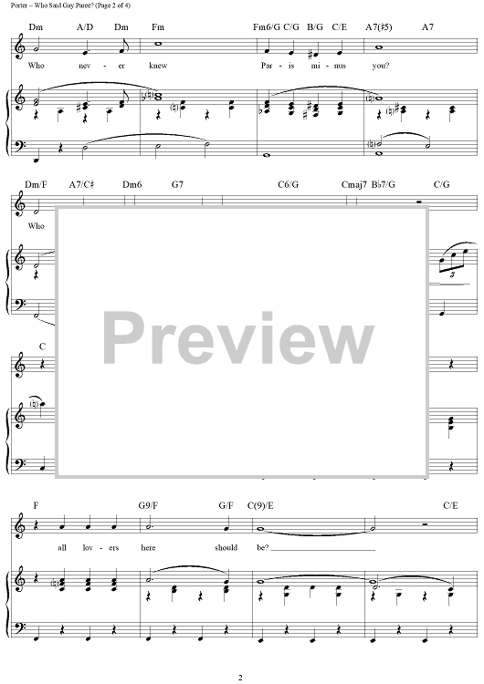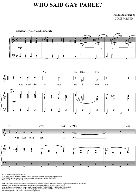 Digital Sheet Music for Who Said Gay Paree? by Cole Porter scored for Piano/Vocal/Chords; id:321018