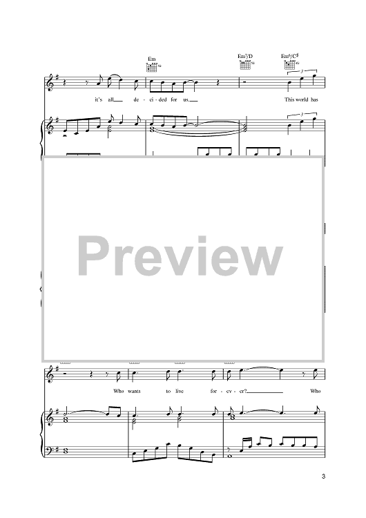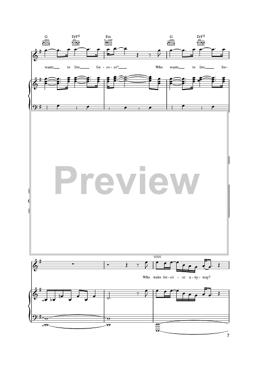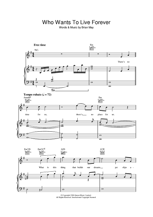 Digital Sheet Music for Who Wants To Live Forever? by Queen, Brian May scored for Piano/Vocal/Chords; id:391530