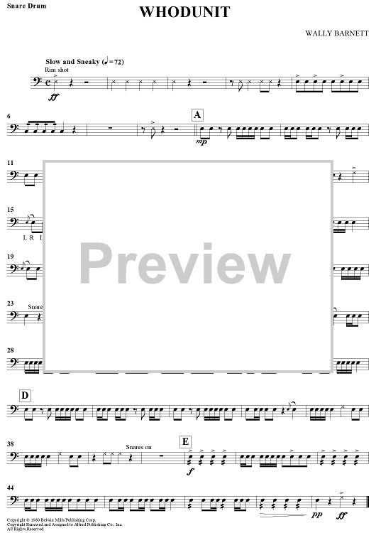 Digital Sheet Music for Whodunit by Wally Barnett scored for Snare Drum/Piano; id:435233