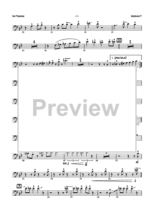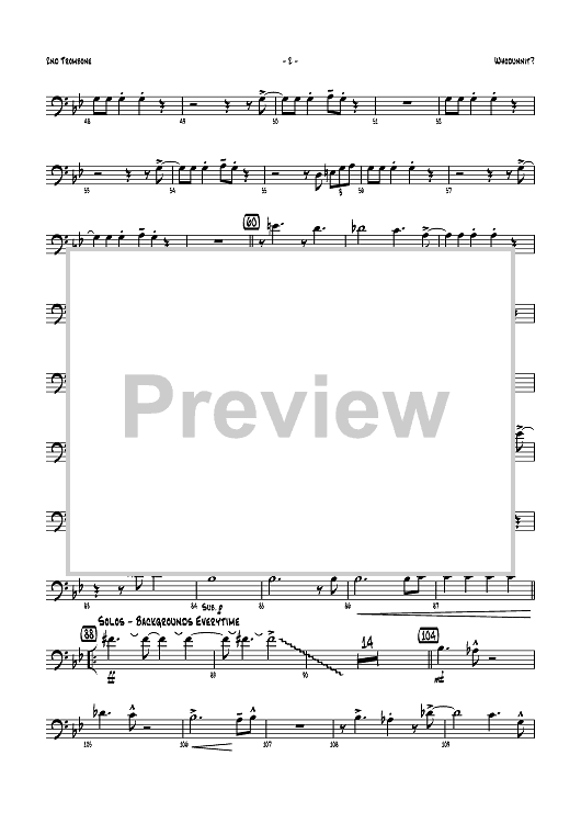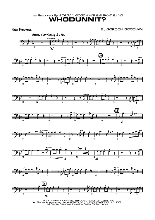 Digital Sheet Music for Whodunnit? - Trombone 2 by Gordon Goodwin, Gordon Goodwin's Big Phat Band scored for Jazz Ensemble; id:356151