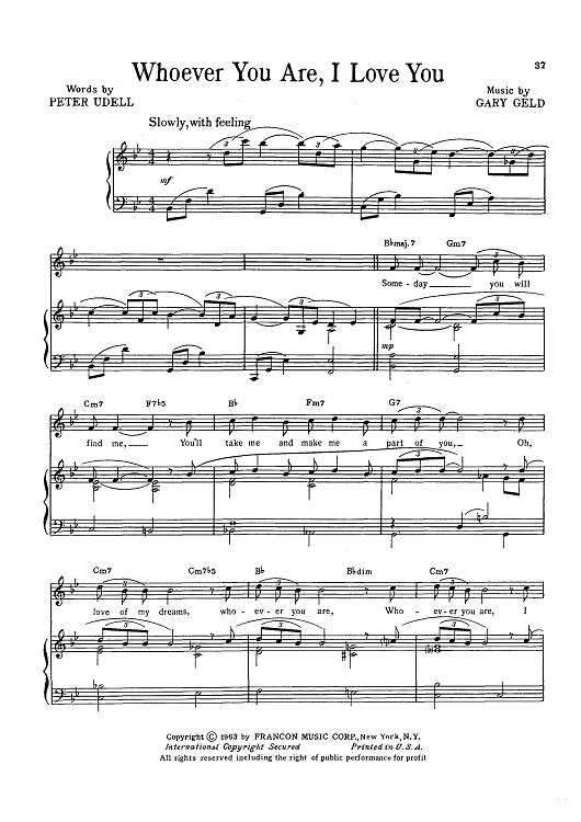 Digital Sheet Music for Whoever You Are, I Love You by Connie Francis, Gary Geld, Peter Udell scored for Piano/Vocal/Chords; id:423079