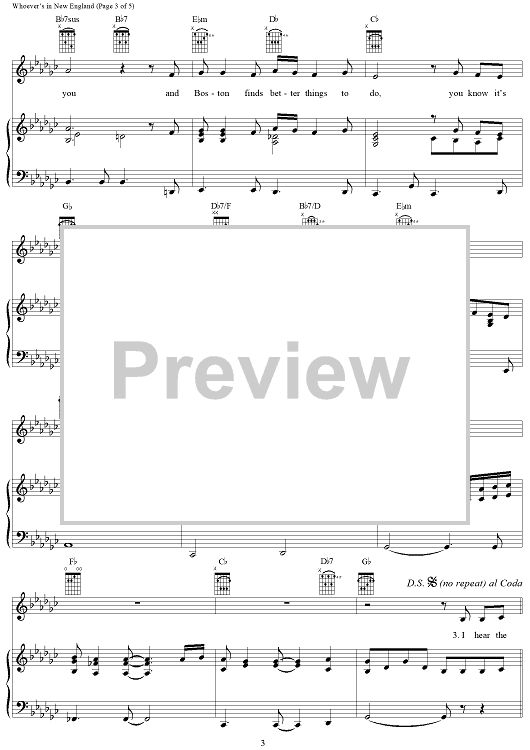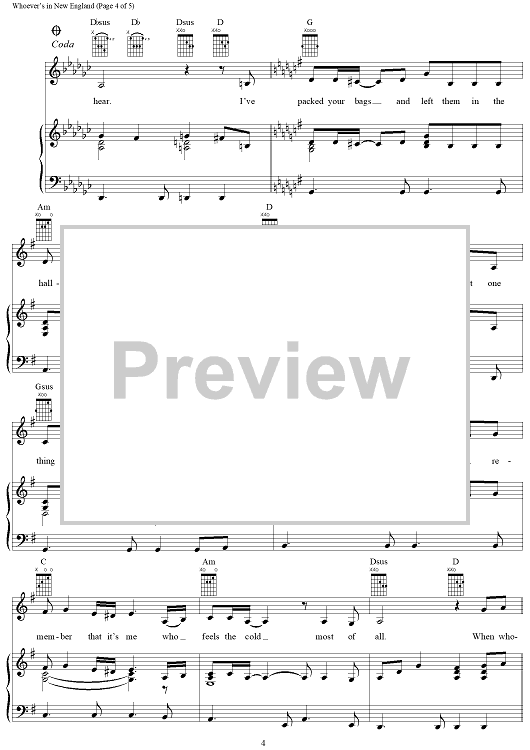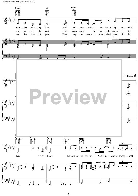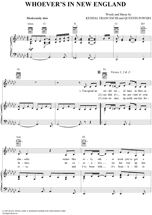 Digital Sheet Music for Whoever's in New England by Reba McEntire, Quentin Powers, Kendall Franceschi scored for Piano/Vocal/Chords; id:269345
