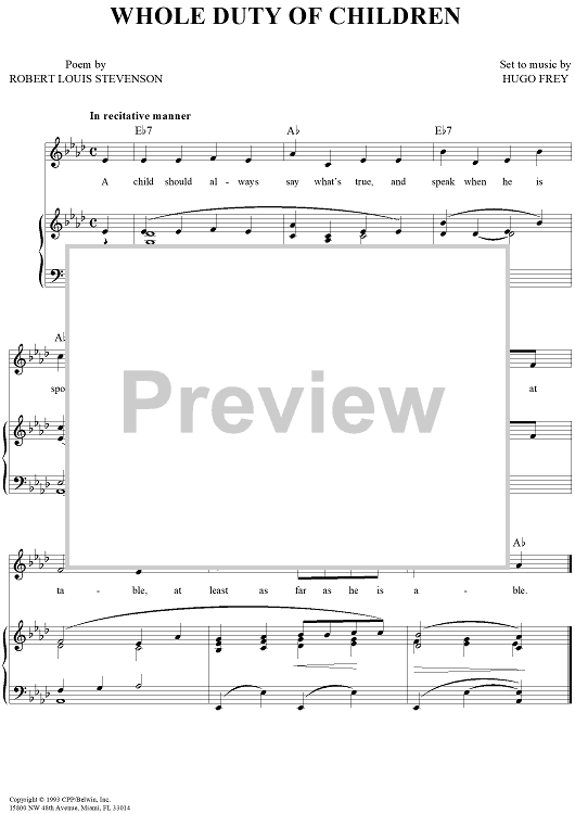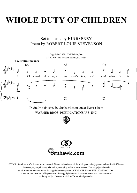 Digital Sheet Music for Whole Duty of Children by Robert Louis Stevenson, Hugo Frey scored for Piano/Vocal/Chords; id:269358