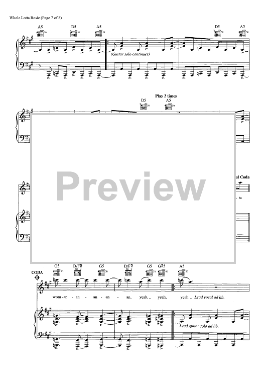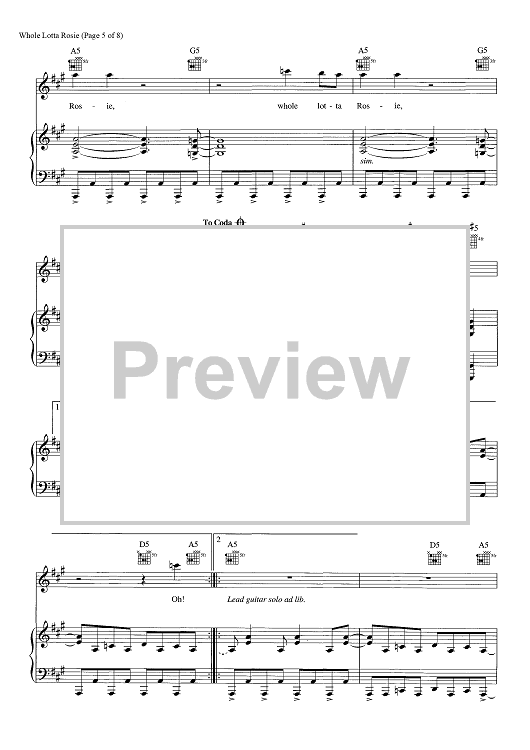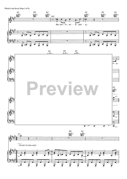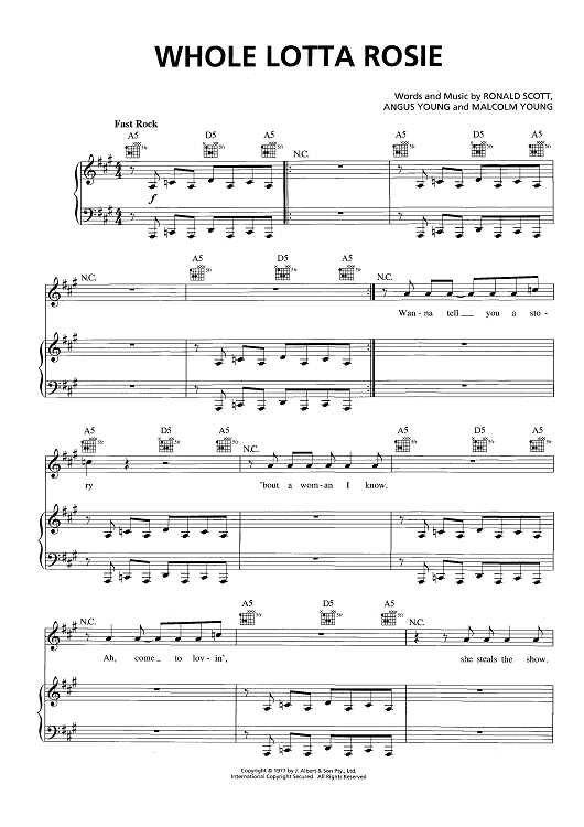 Digital Sheet Music for Whole Lotta Rosie by Ronald Scott, AC/DC, Angus Young, Malcolm Young scored for Piano/Vocal/Chords; id:465987