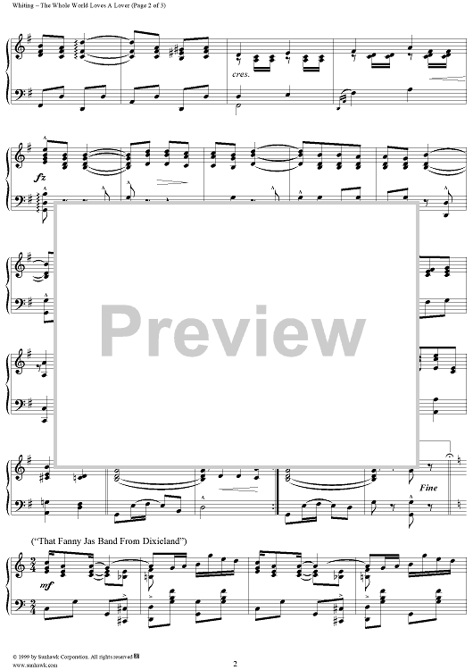 Digital Sheet Music for Whole World Loves A Lover / That Funny Jas Band From Dixieland medley (One Step) by Richard A. Whiting scored for Piano/Vocal; id:264188
