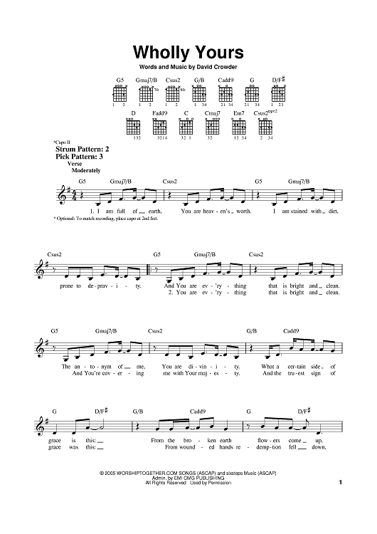 Digital Sheet Music for Wholly Yours by David Crowder, David Crowder Band scored for Easy Guitar; id:398253