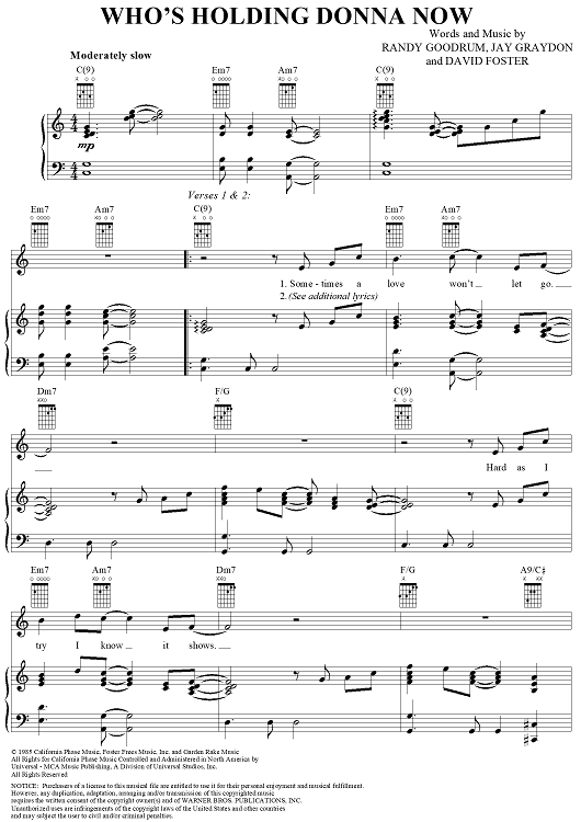 Digital Sheet Music for Who's Holding Donna Now by Randy Goodrum, Jay Graydon, DeBarge, David Foster scored for Piano/Vocal/Chords; id:321692