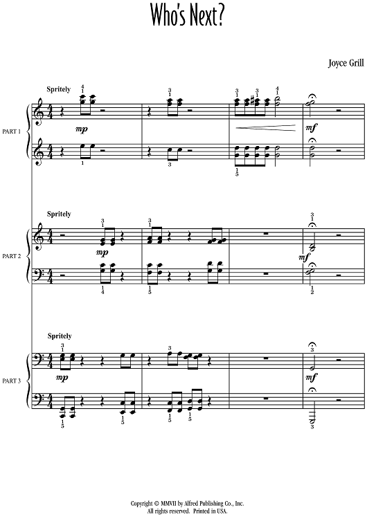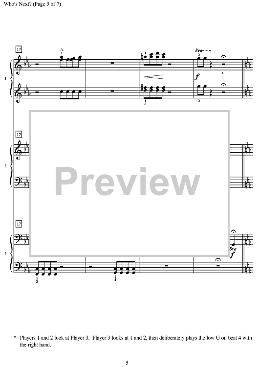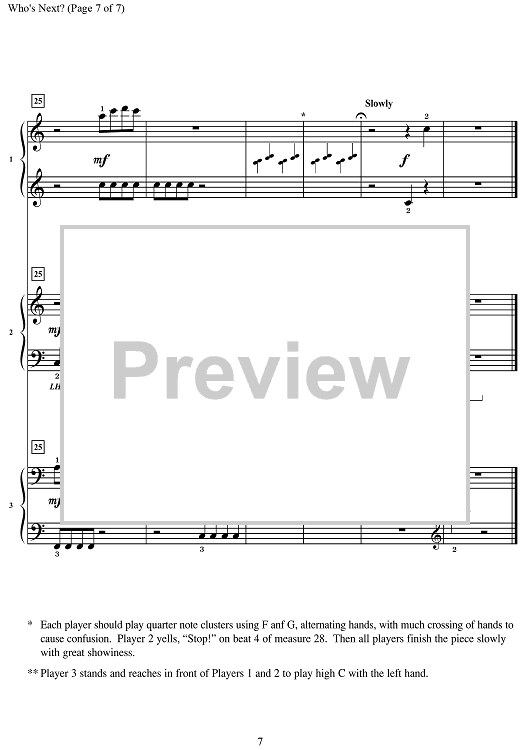Written for three players at one piano, this trio is full of musical as well as visual surprises. Players appear to be battling over who will get to play the highest and the lowest notes of this energetic piece that is as much fun to watch as it is to listen to and perform. A Federation Festivals 2016-2020 selection.