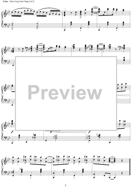 Digital Sheet Music for Who's Sorry Now? ("Fats" Waller's Conception) by Ted Snyder, Fats Waller, Bert Kalmar, Harry Ruby scored for Piano Solo; id:317022