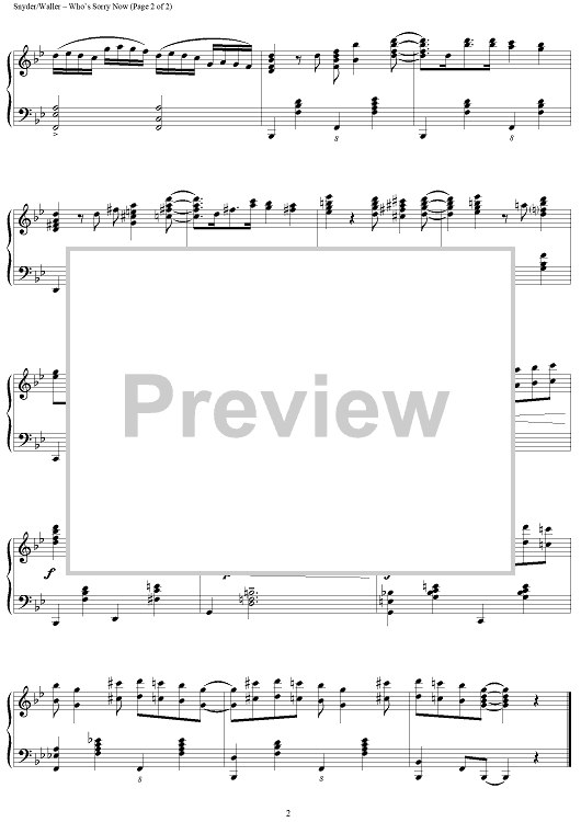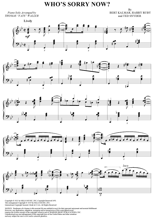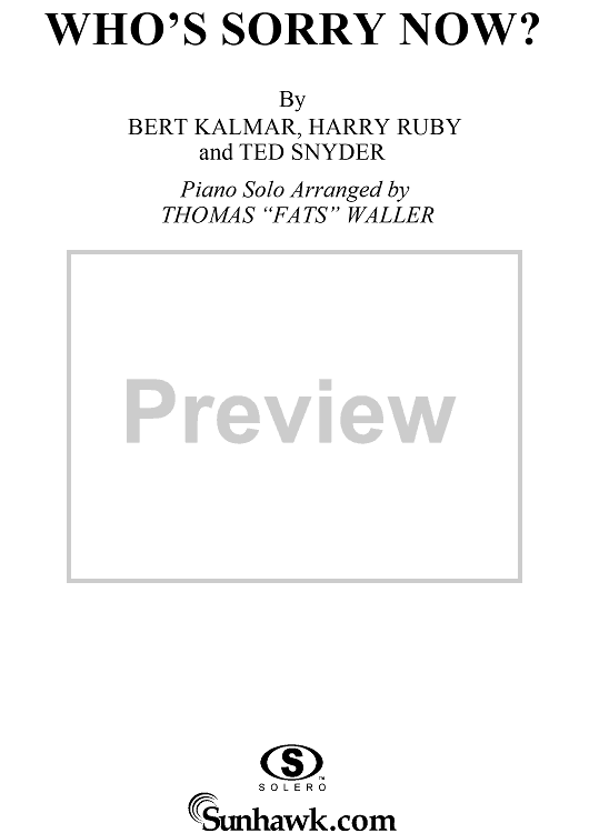 Digital Sheet Music for Who's Sorry Now? by Ted Snyder, Fats Waller, Bert Kalmar, Harry Ruby scored for Piano Solo; id:186205