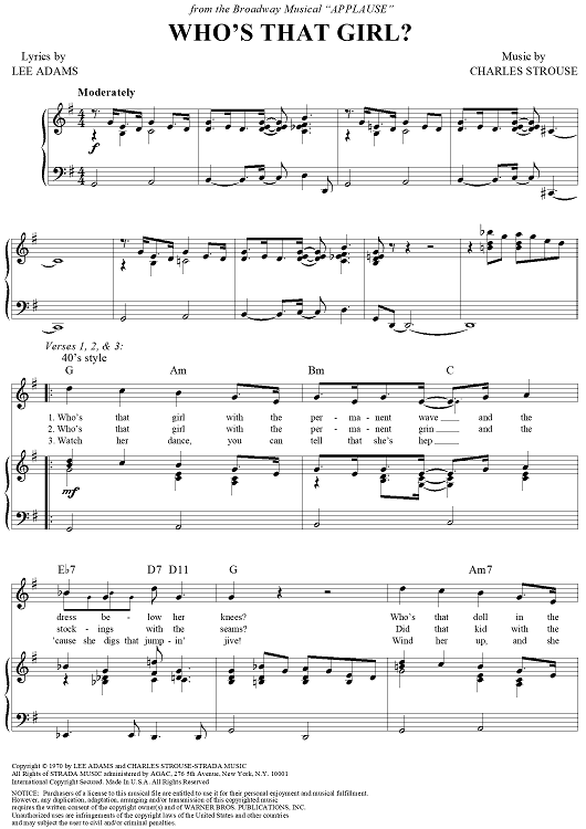 Digital Sheet Music for Who's That Girl? by Charles Strouse, Lee Adams scored for Piano/Vocal/Chords; id:235220