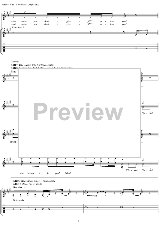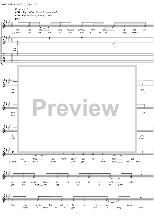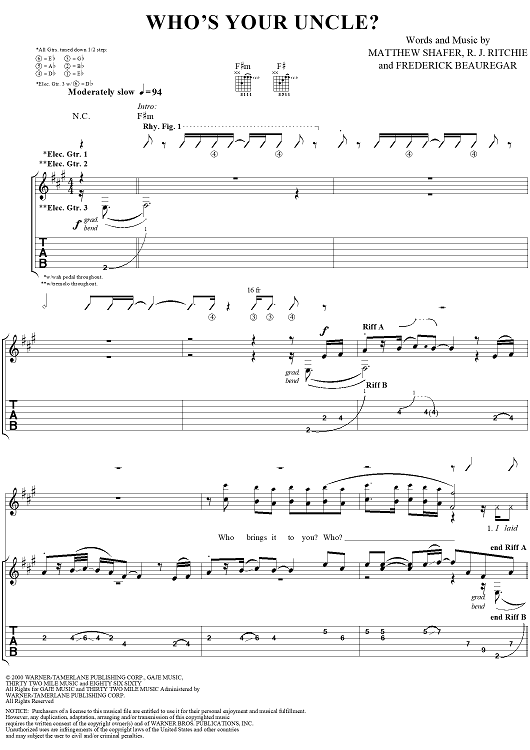 Digital Sheet Music for Who's Your Uncle? by Matthew Shafer, Uncle Kracker, R. J. Ritchie, Frederick Beauregard scored for Guitar Tab/Vocal; id:285772